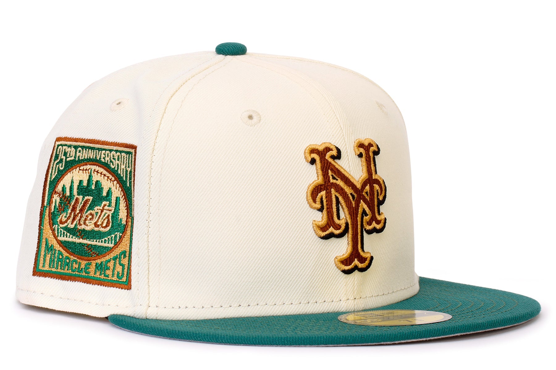 New Era 59FIFTY Fitted hat New York Mets features an embroidered NY logo at the front panels and a 25Th Anniversary side patch at the right-wear side with an MLB Batterman logo at the rear.
