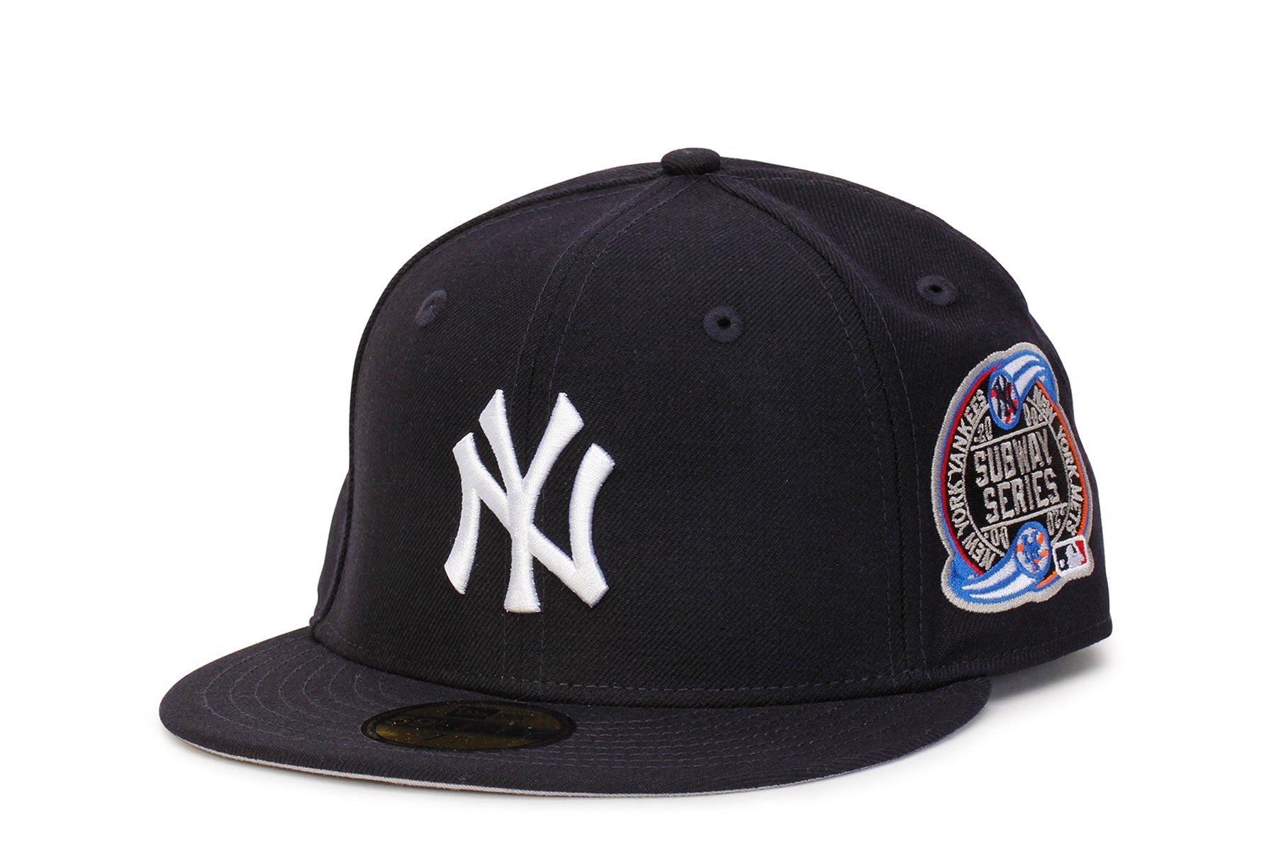 New Era 59FIFTY Fitted hat New York Yankees 2000 Subway Series side patch. Navy and Grey Undervisor. MLB Batterman logo at the rear.
